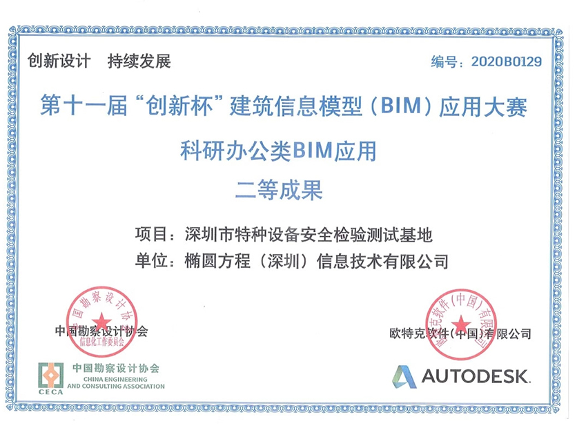 承接的深圳市特种设备安全检验测试基地项目获第十一届“创新杯”BIM应用大赛科研办公类BIM应用二等奖