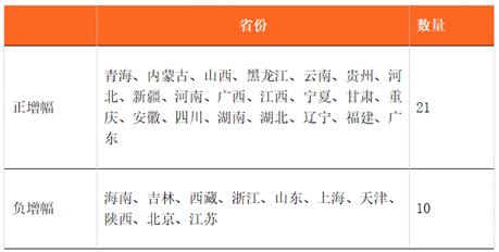 与2018比,各省市区发展指数增幅有正有负,正增幅最大的为青海省(15.44%),负增幅最大的省份为江苏(-54.48%)。