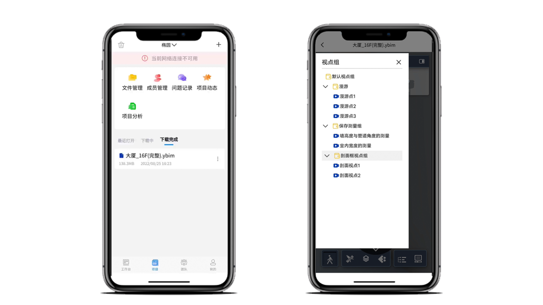 app端文件支持同步下载相关联的问题详情、问题动态及视点,方便用户在离线状态下进行模型浏览和管理